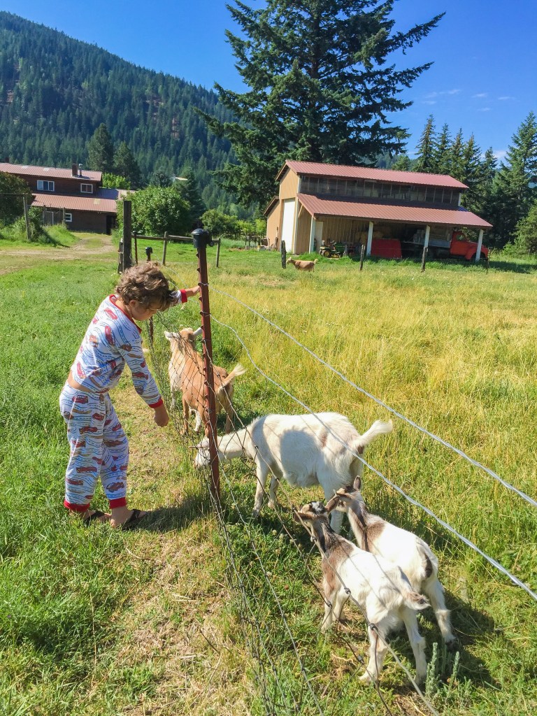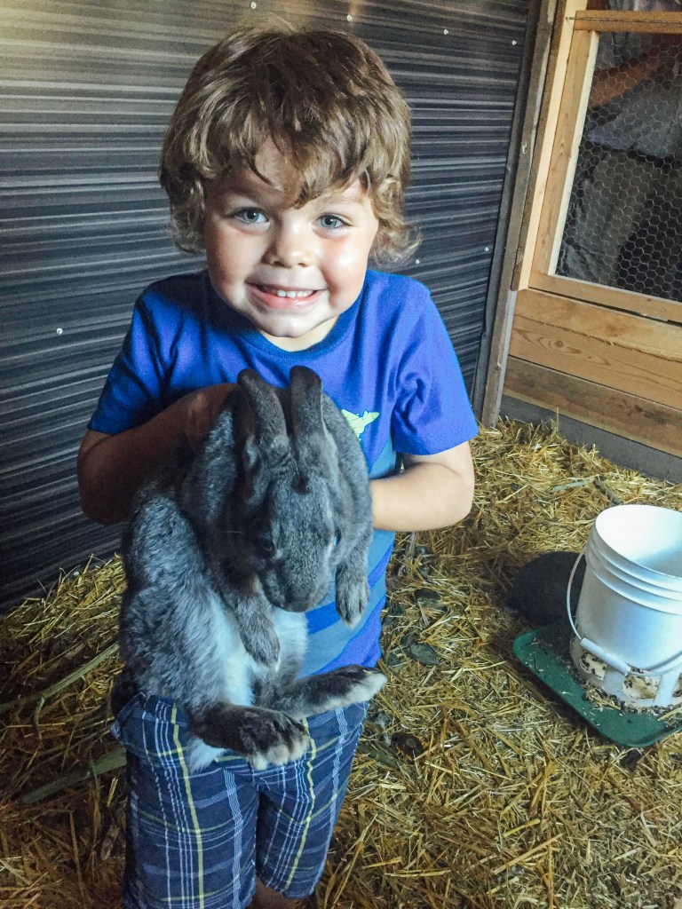 On our first visit I was there with the boys, my parents, and my daughter was newly growing inside me. I found out I was pregnant the day before we left on our road trip! We loved it so much that we had to come back with Jon, my husband, since he wasn’t there with us on our first visit. We specifically saved a week of his parental leave when my daughter was born to go on another road trip the next summer so that we could take him to the farm. So our then 4 month old daughter got to go on her first multi-state road trip much earlier than her brothers. We visited again this past May and it was nice for her to actually experience the farm for the first time. She went around hugging each of the goats, wanted to keep checking on the bunnies, and enjoyed collecting eggs.
