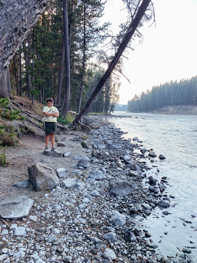 This was a spot we explored on our last trip. The kids got to stretch their legs and play and we spotted some birds. It also had bathrooms. It was right around the Beaver Pond on the road up to Mammoth Hot Springs.There are lots of spots to stop along the river on the east side to explore.There are lots of breathtaking waterfall viewpoints that are a quick stop if you don’t prefer/don’t have time to hike. We are obsessed with stuffies in our house so we got some in the gift shop on our final trip there this year.spotting birds and elk off in the distance in Hayden Valley