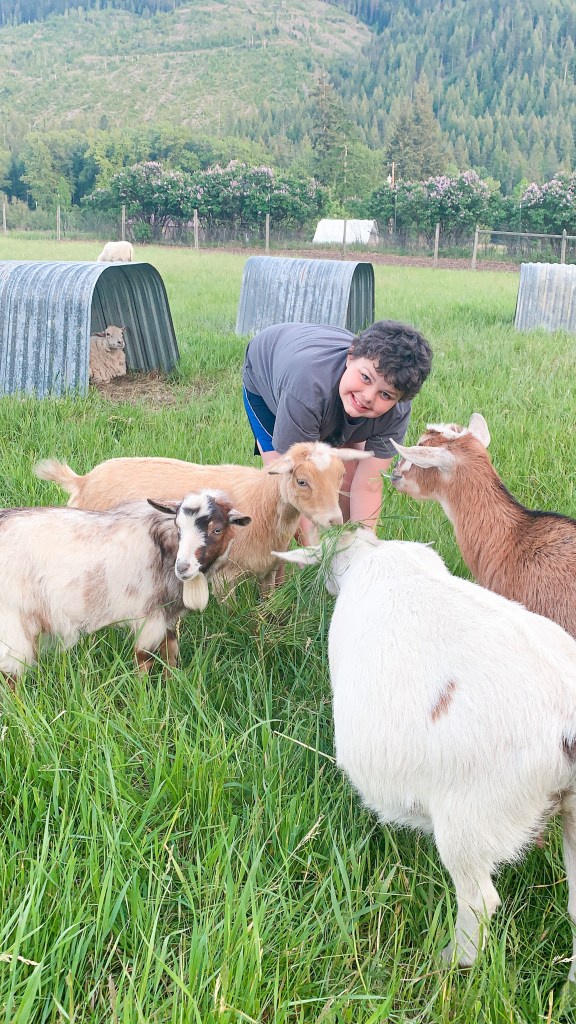 When looking through my photos I found this. My Dad was taking a turn driving and I was writing notes back and forth to my oldest. When I asked what his favorite part had been so far, he replied, “kids” (the baby goats) and then wrote, “yes, but I miss them.” He loved running around with those baby goats so much!